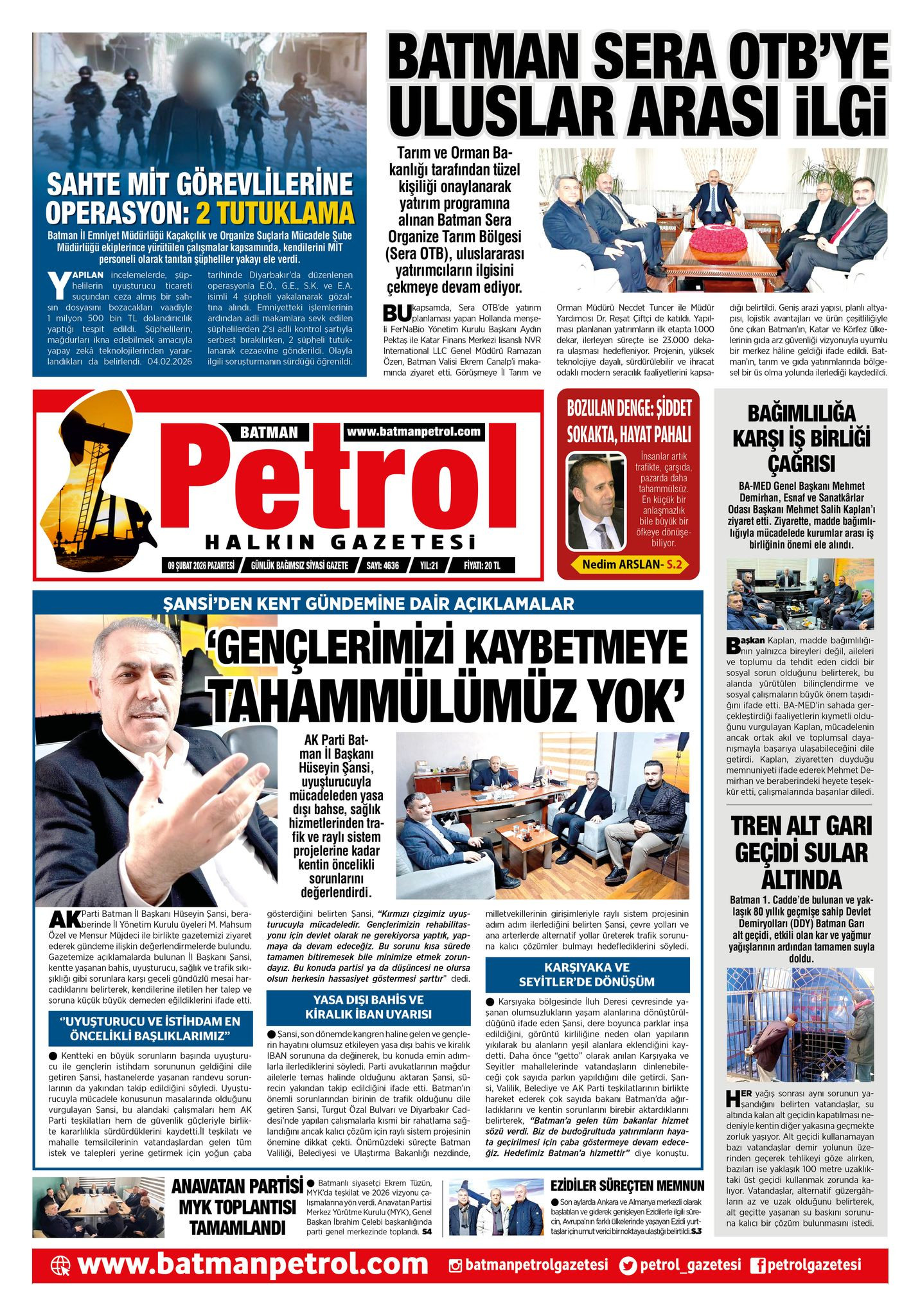 AK Parti Batman İl Başkanı Hüseyin Şansi, uyuşturucuyla mücadeleden yasa dışı bahse, sağlık hizmetlerinden trafik ve raylı sistem projelerine kadar kentin öncelikli sorunlarını değerlendirdi. ...