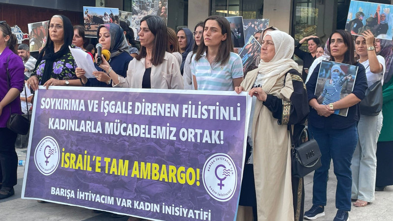 “Barışa İhtiyacım Var” Kadın İnisiyatifi öncülüğünde, TJA ve DEM Parti Batman İl Örgütü’nün katılımıyla Gülistan Caddesi’nde basın açıklaması yapıldı. Açıklamada, İsrail’in saldırılarına karşı direnen Filistinli kadınlara destek verildi ve İsrail’e tam ambargo uygulanması çağrısında bulunuldu. Açıklamayı okuyan Zeynep Çelik, “Soykırıma ve işgale direnen Filistinli kadınlarla mücadelemiz ortaktır” dedi. 6 Eylül 2023’te İsrail askerleri tarafından öldürülen Ayşenur Ezgi Eygi’yi anan Çelik, “Ayşenur’un anısını mücadelemizde yaşatıyoruz” ifadelerini kullandı. Çelik, İsrail saldırılarında en büyük zararı kadınların ve çocukların gördüğünü belirterek, “Kadınlar bombardıman altında yaşam mücadelesi verirken aynı zamanda çocukların, yaşlıların ve yaralıların bakımını üstleniyor” dedi.Kadın İnisiyatifi, Türkiye’nin İsrail ile ilişkilerini sürdürmesini eleştirerek şu talepleri sıraladı: İsrail’e tam ambargo ilan edilmesi, Askeri, siyasi, ticari, akademik ve kültürel ilişkilerin kesilmesi, Petrol sevkiyatının durdurulması, limanların İsrail’e giden gemilere kapatılması. Basın açıklaması, “Nehirden denize özgür Filistin” sloganlarıyla sona erdi.