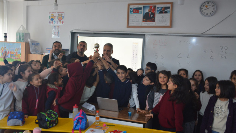 Sınıfa girdiğinde büyük bir coşkuyla karşılanan Başkan Akyol, kupayı vermeden önce öğrencilerin futbol ile ilgili merak ettiği tüm soruları yanıtladı. Öğrenciler; Batman Petrolspor, amatör ligler ve altyapı süreçleri hakkında sorular sorarken, futbola nasıl başlayabileceklerini de öğrenmek istedi. Miniklerin futbola olan ilgisinden memnun kalan Akyol, “Futbola yönelmek isteyen tüm öğrencilerimize her konuda destek olmaya hazırız.” diyerek çocuklara moral verdi. Şampiyon takımı tebrik eden ASKF Başkanı Mahmut Akyol, sporun eğitimle birlikte yürümesi gerektiğini vurgulayarak şu ifadeleri kullandı: “Öncelikle sınıflar arası futbol turnuvasında şampiyon olan 3-D sınıfını ve turnuvaya katılan tüm sınıflarımızı tebrik ediyorum. Başarılı sporcular, aynı zamanda disiplinli ve başarılı birer öğrencidir. Sporun içindeki rekabet, dayanışma ve disiplin tüm hayatınıza katkı sağlar.” 3-D sınıf öğretmeni Şehmus Batar, öğrencilerinin başarısından duyduğu gururu dile getirerek, Başkan Akyol’a ziyaretlerinden dolayı teşekkür etti. Batar, “Minik şampiyonlarımızı onurlandırdığı için ASKF Başkanı Sayın Mahmut Akyol’a teşekkür ediyorum. Bu ziyaret öğrencilerimiz için unutulmaz bir motivasyon oldu.” dedi. ASKF Başkanı Akyol’un sürpriz ziyareti, minik sporculara hem büyük bir mutluluk hem de geleceğe dair güçlü bir motivasyon kazandırdı. 3-D sınıfı öğrencileri kupalarını coşkuyla kaldırırken, sınıfta renkli ve gurur dolu anlar yaşandı.